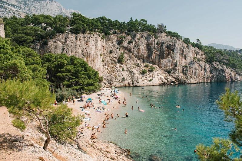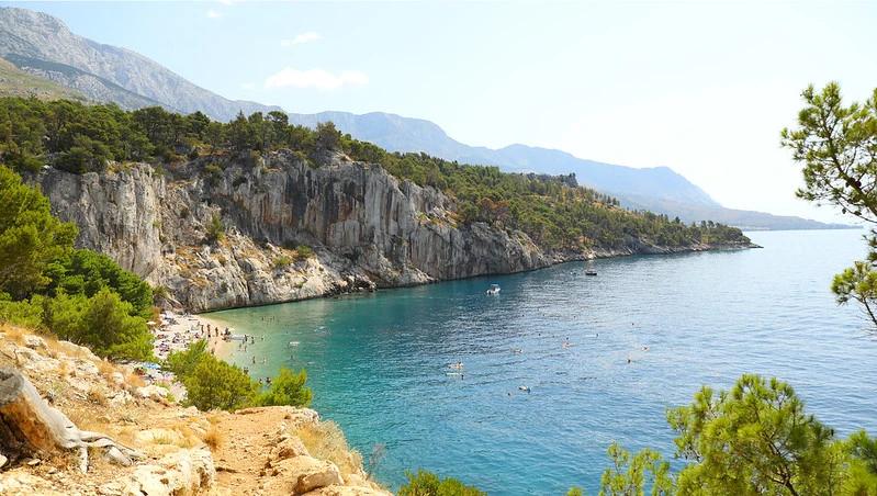 - Dramatic setting: The beach sits between steep cliffs with forest behind, giving it a wild, natural feel that’s rare along the Makarska Riviera.