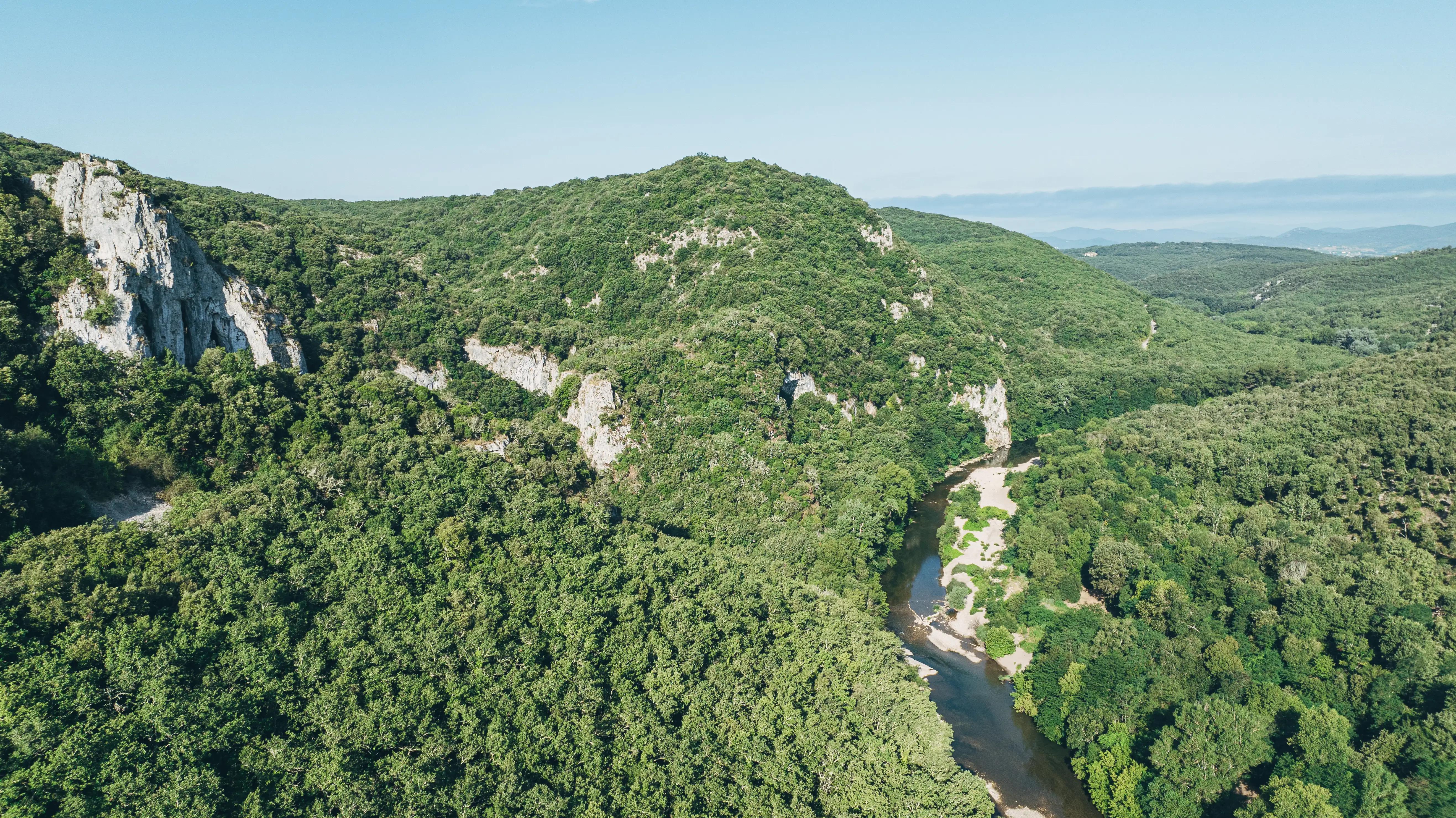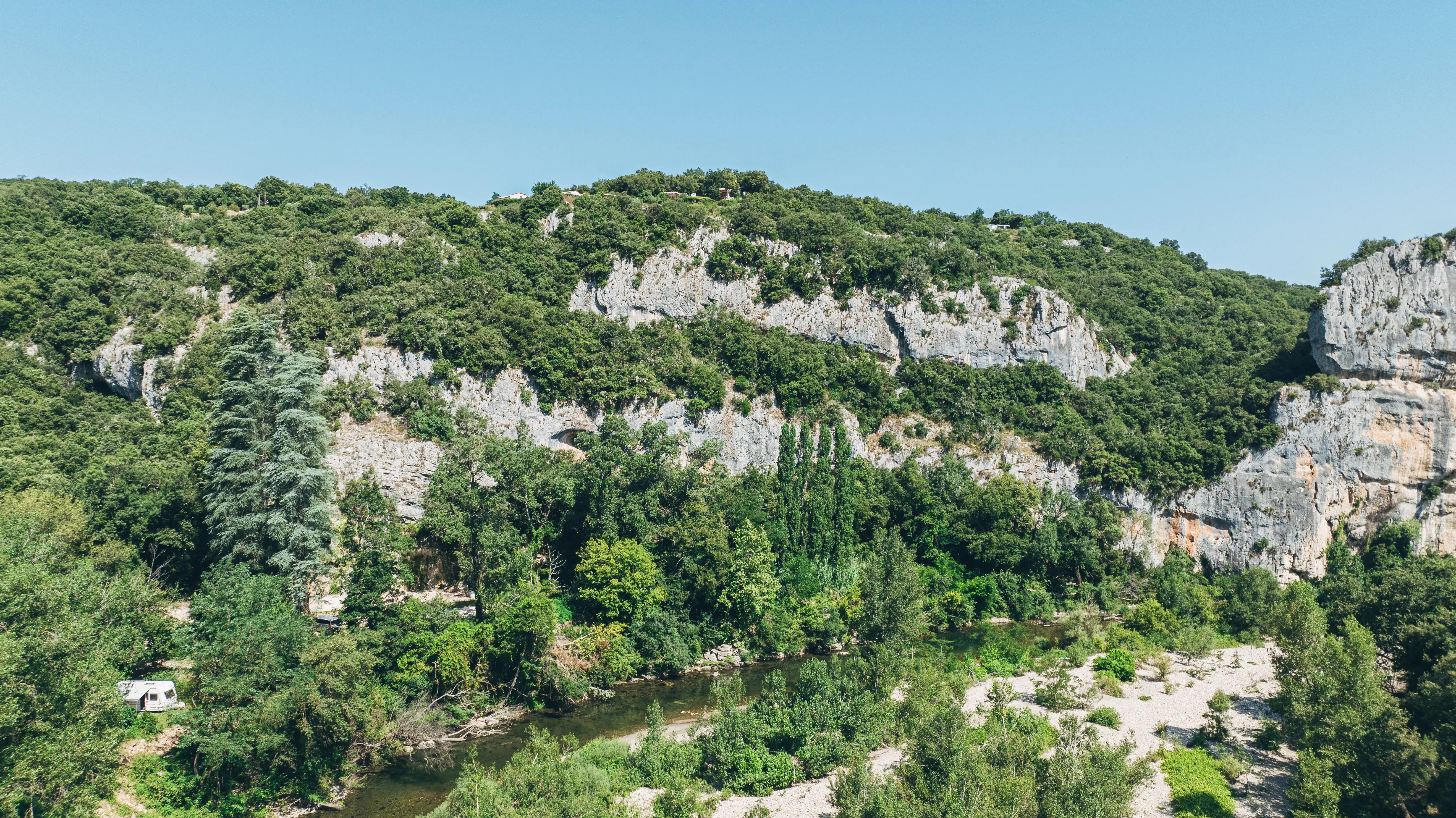 Tucked away in the heart of the Cèze gorges, between the Gard and Ardèche departments, Domaine de la Sablière is a peaceful riverside naturist retreat where nature and nudity coexist in harmony. Set across a vast, wooded hillside with breathtaking views of the valley, this family-friendly campsite invites you to reconnect—with yourself, with others, and with the natural world.