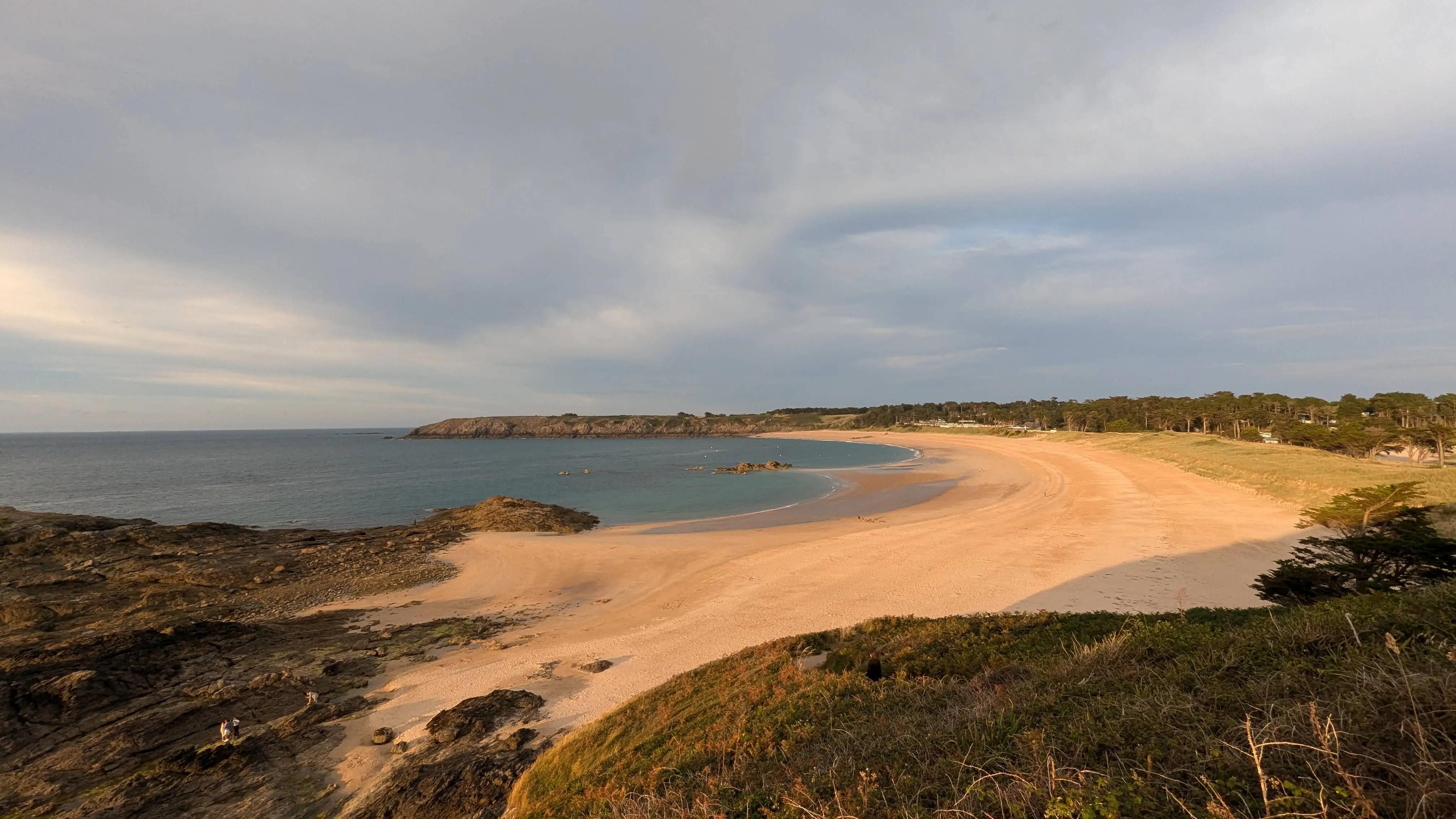 Naturism here is well-tolerated and widely practiced. On warm days, the right-hand side buzzes pleasantly with a mix of families, couples, older regulars, and visitors from nearby campgrounds. The views toward the headlands and the dunes above the restaurant give this beach a magical feel. A perfect place to enjoy a Brittany summer day; as free or as dressed as you like.