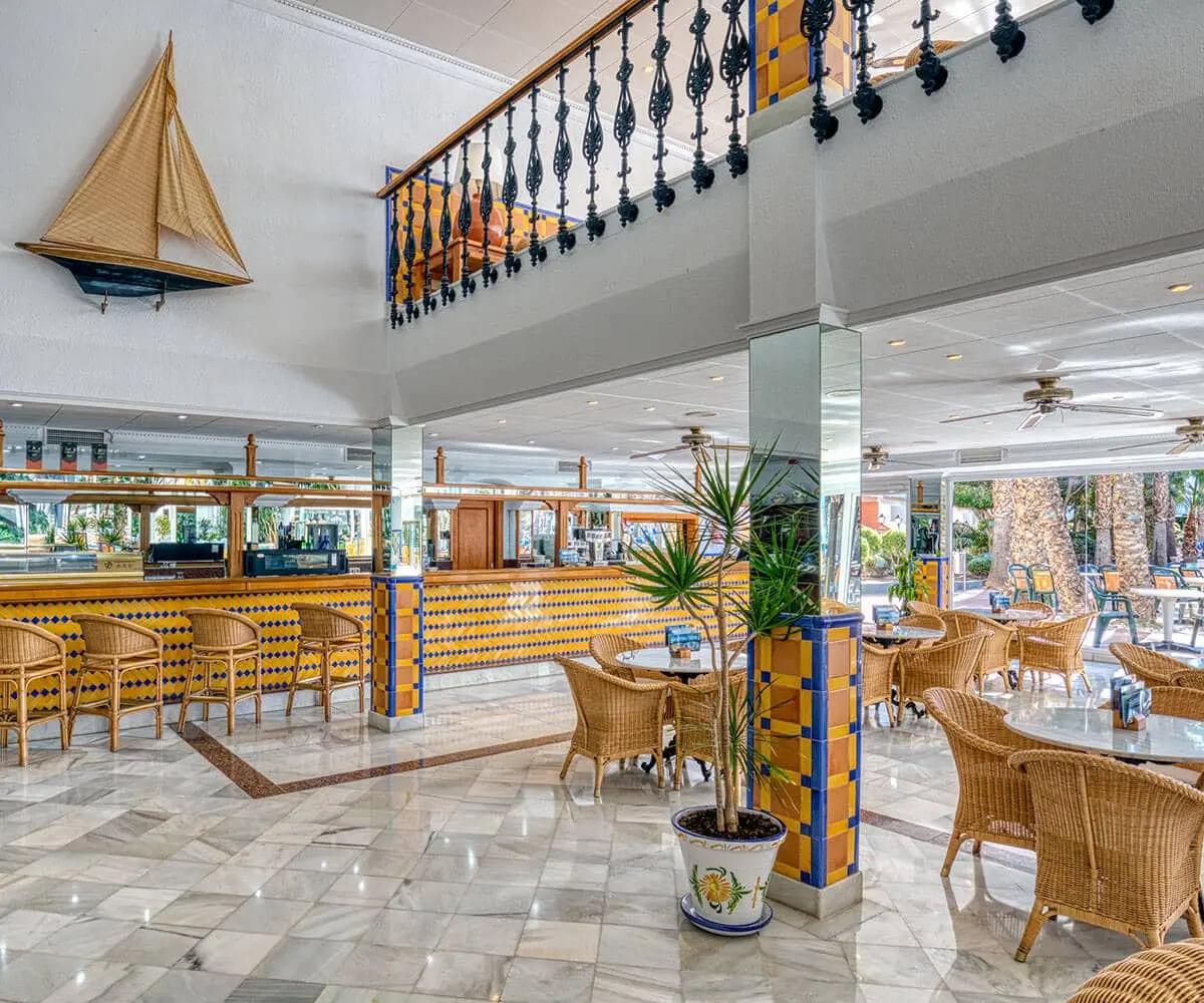 All rooms are air-conditioned, vibrantly decorated, and include a furnished balcony with satellite TV. Free Wi-Fi is available in public areas. Guests can enjoy a buffet restaurant serving a mix of Spanish and international dishes, along with a lounge bar, pub, and a summer Beach Club. Nightly entertainment and children’s activity clubs ensure fun for all ages.