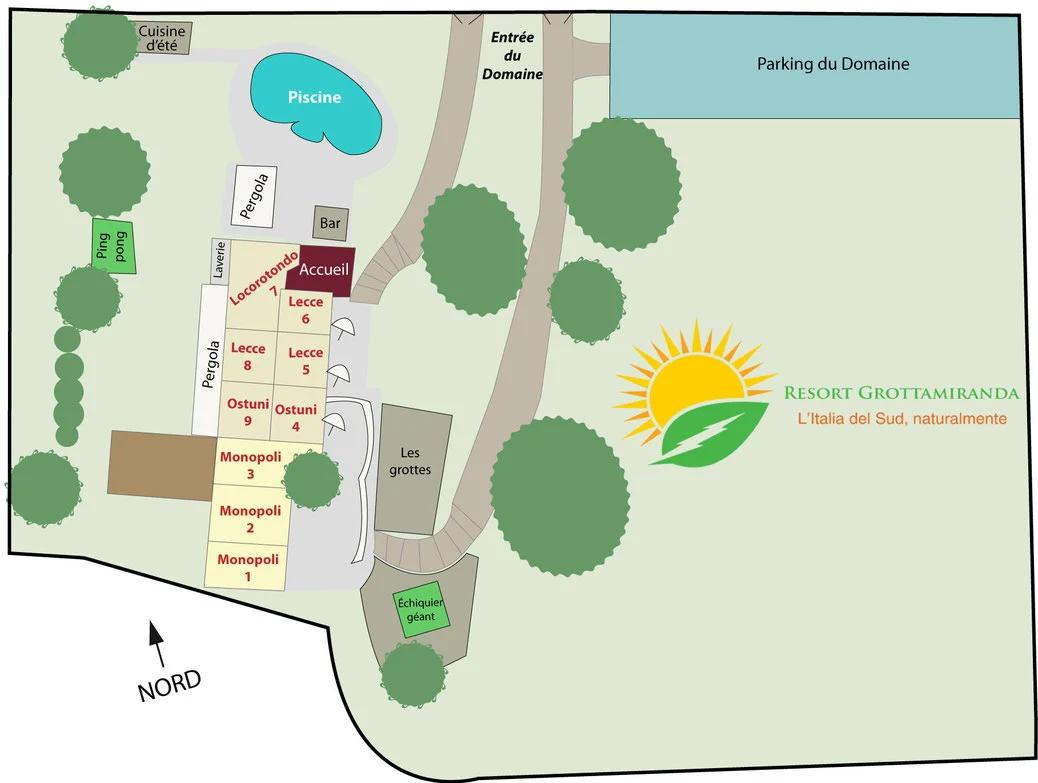 The easiest way to reach Grottamiranda is by car. Most visitors arrive via Brindisi Airport (BDS), which is about a 25–30 minute drive from the resort. From Brindisi, follow signs toward Carovigno / Torre Santa Sabina, then continue inland toward the countryside. The final stretch is along local rural roads - they’re paved but narrow, so take it slow and follow the resort’s directions carefully. Free on-site parking is available once you arrive.