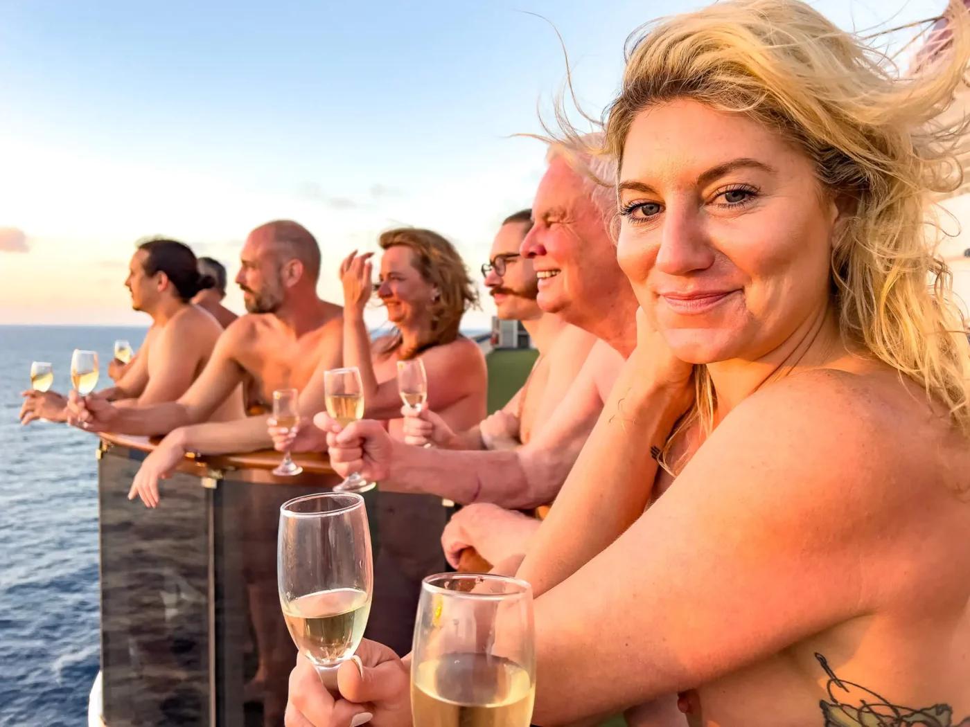 Nude Beach Map’s Francelli boarded The Big Nude Boat 2024 with a mix of excitement and curiosity. Let’s be honest – cruise ships often cater to an older demographic. From my experience on a non-nude cruise to the Pacific Islands a few years ago, I was convinced that rarely anyone under 70 cruises. While I had a great time, meeting more people my age would have been nice.